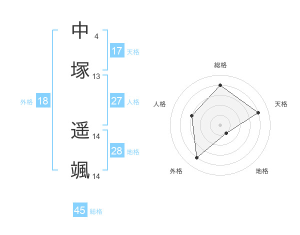 中塚 遥颯さんの天格は17画の4点!