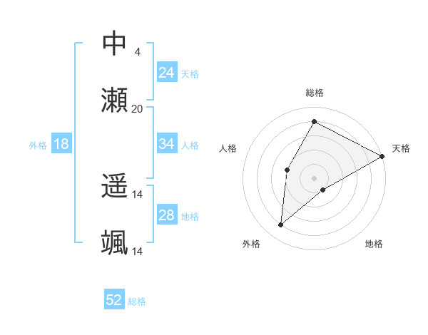 中瀬 遥颯さんの総格は52画の4点!