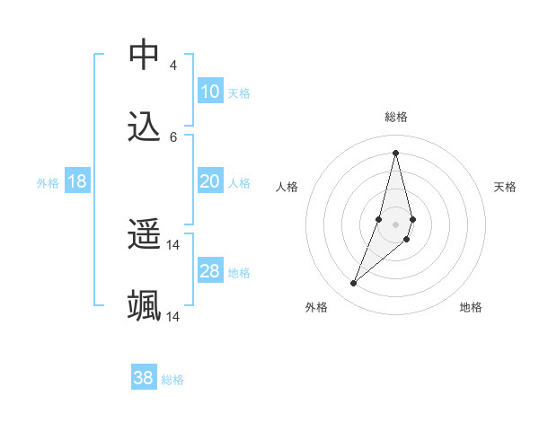 中込 遥颯さんの総格は38画の4点!