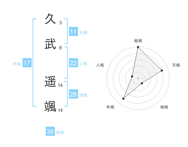 久武 遥颯さんの外格は17画の4点!