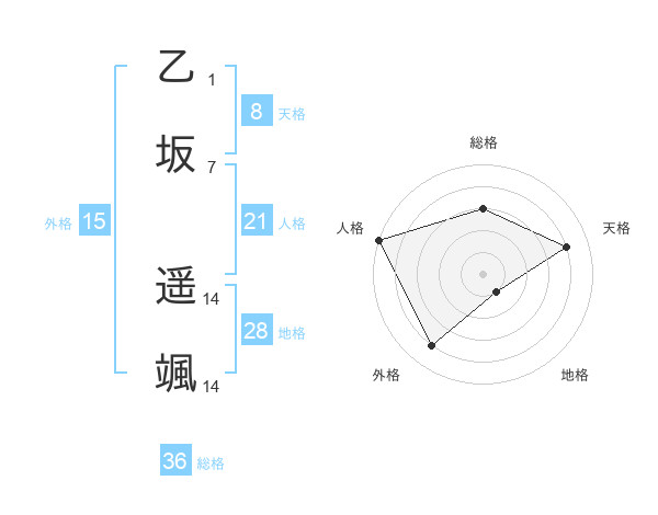 乙坂 遥颯さんの外格は15画の4点!