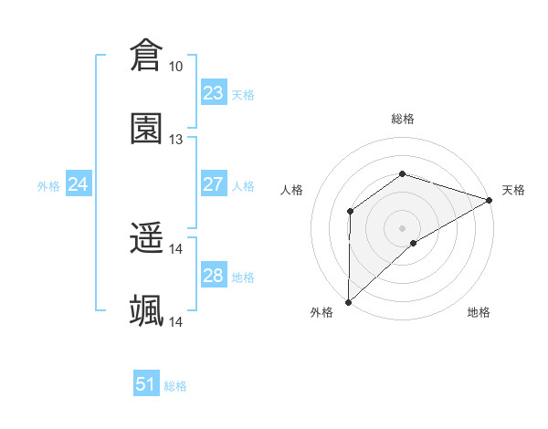 倉園 遥颯さんを姓名の画数から五運を鑑定