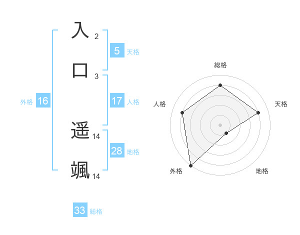 入口 遥颯さんの総格は33画の4点!