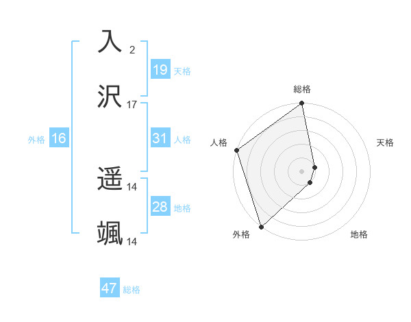 入沢 遥颯さんの総格は47画の5点!