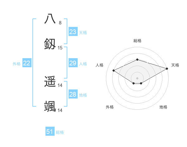 八釼 遥颯さんの総格は51画の3点!