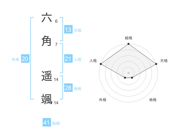 六角 遥颯さんの総格は41画の5点!