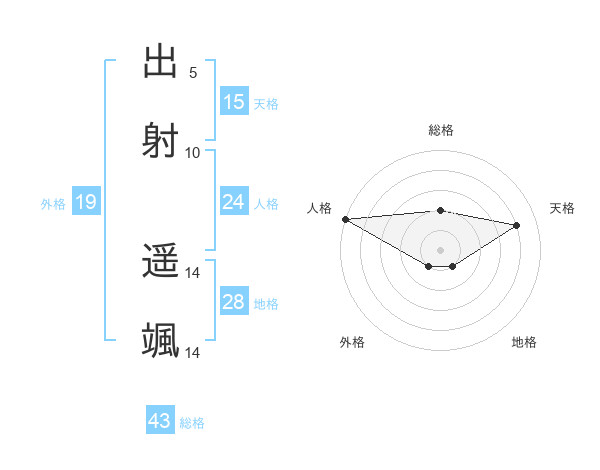 出射 遥颯さんの天格は15画の4点!