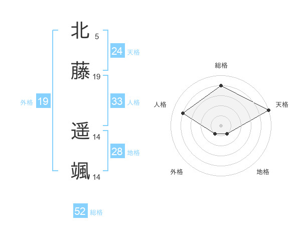 北藤 遥颯さんの総格は52画の4点!