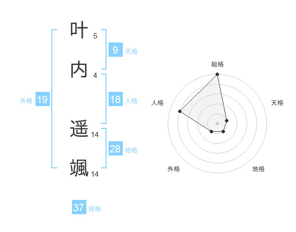 叶内 遥颯さんの総格は37画の5点!
