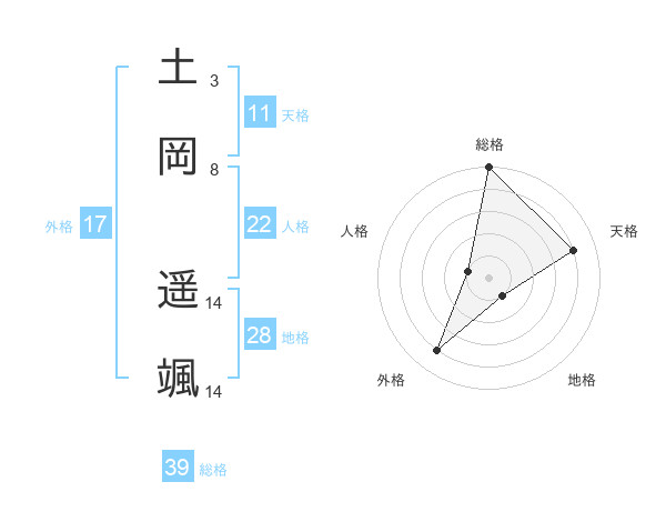 土岡 遥颯さんの総格は39画の5点!