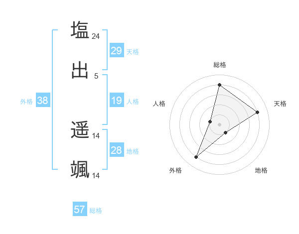 塩出 遥颯さんの外格は38画の4点!