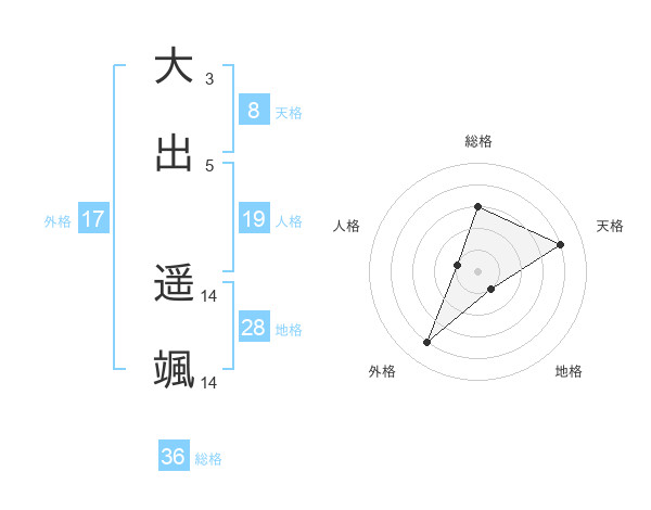 大出 遥颯さんの天格は8画の4点!