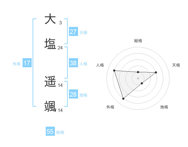 大塩 遥颯さんを姓名の画数から五運を鑑定