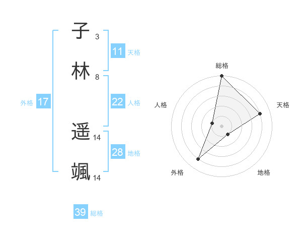 子林 遥颯さんの総格は39画の5点!