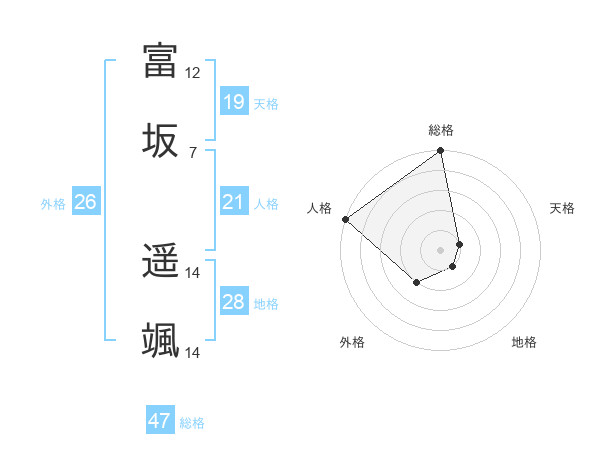富坂 遥颯さんの総格は47画の5点!