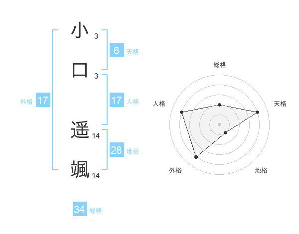 小口 遥颯さんを姓名の画数から五運を鑑定