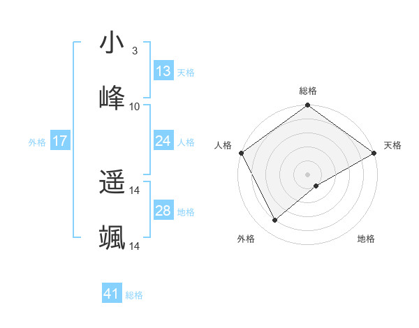 小峰 遥颯さんの総格は41画の5点!
