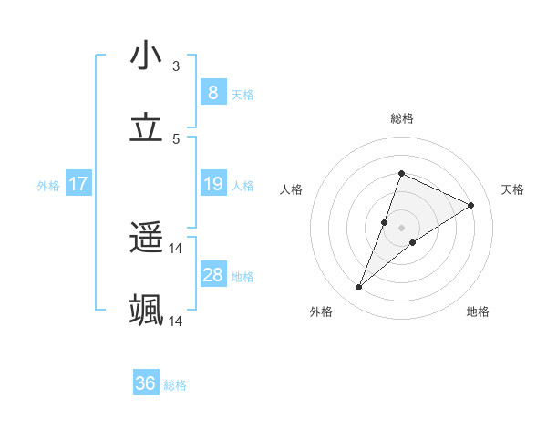 小立 遥颯さんを姓名の画数から五運を鑑定