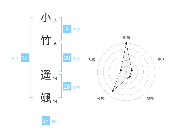 小竹 遥颯さんを姓名の画数から五運を鑑定