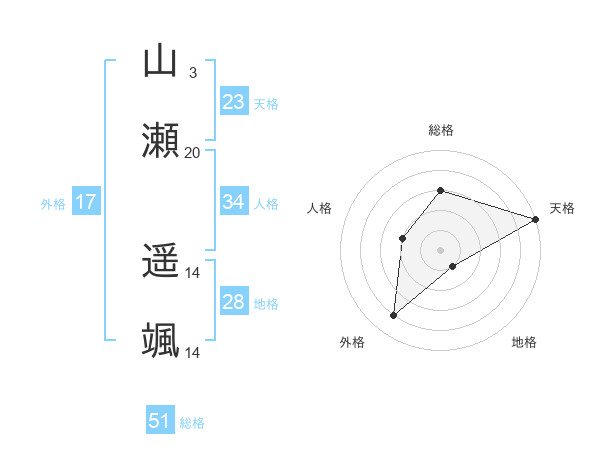 山瀬 遥颯さんの総格は51画の3点!
