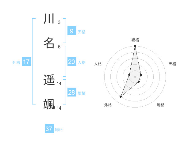 川名 遥颯さんの総格は37画の5点!