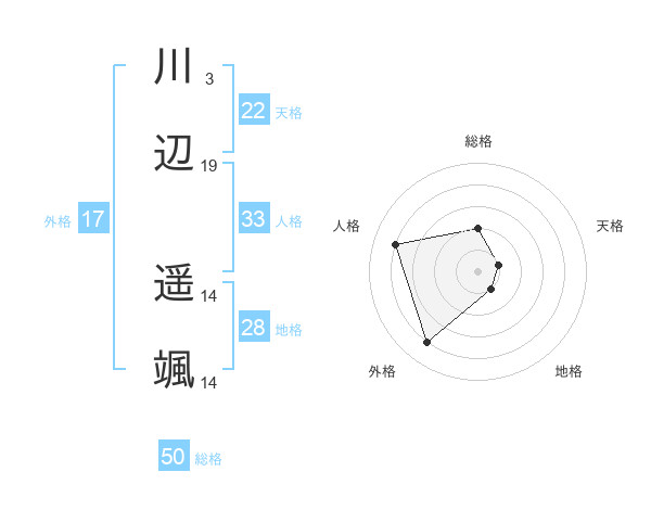 川辺 遥颯さんを姓名の画数から五運を鑑定
