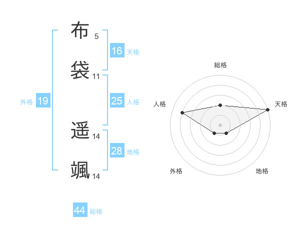 布袋 遥颯さんを姓名の画数から五運を鑑定