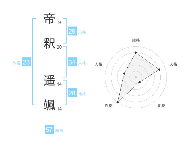 帝釈 遥颯さんの天格は29画の4点!