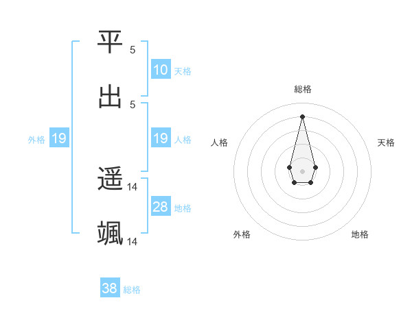 平出 遥颯さんの総格は38画の4点!