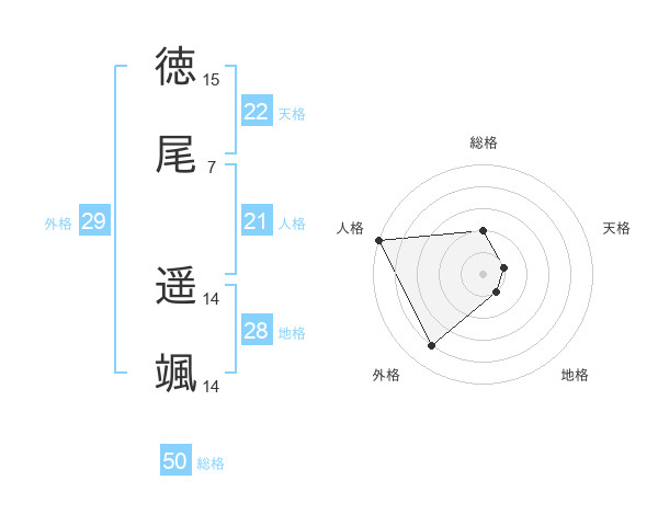 徳尾 遥颯さんの総格は50画の2点!