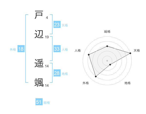 戸辺 遥颯さんの総格は51画の3点!