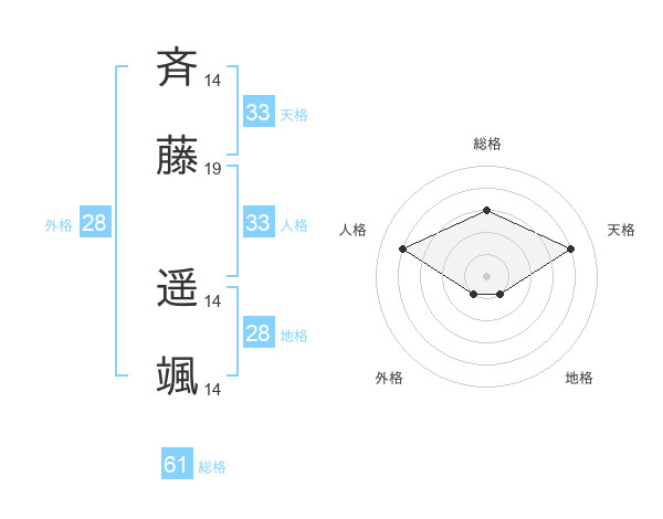 斉藤 遥颯さんの天格は33画の4点!