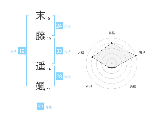末藤 遥颯さんの総格は52画の4点!