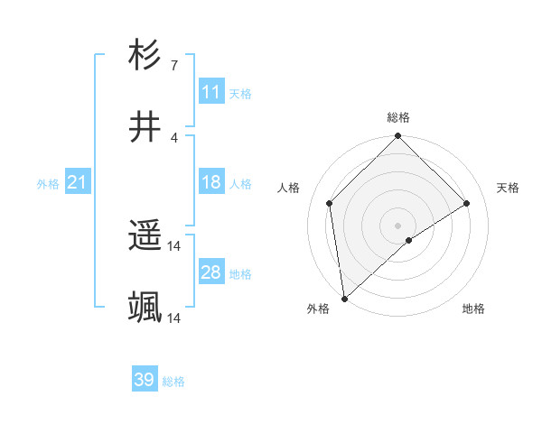 杉井 遥颯さんの総格は39画の5点!