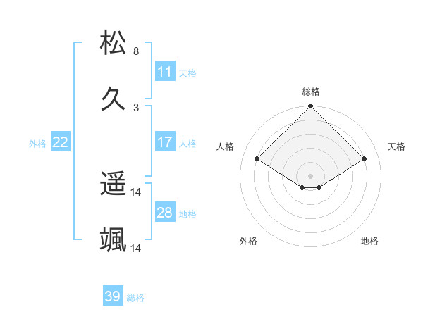 松久 遥颯さんの総格は39画の5点!