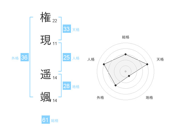 権現 遥颯さんの総格は61画の3点!