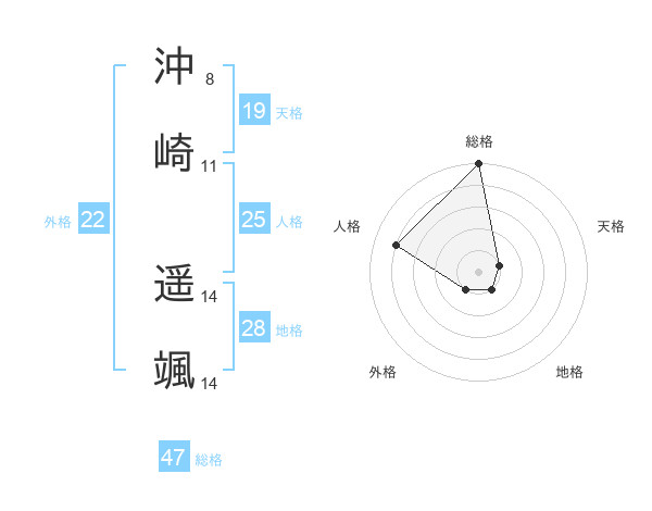 沖崎 遥颯さんの外格は22画の1点!