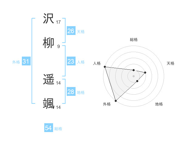 沢柳 遥颯さんの外格は31画の5点!