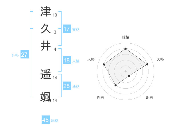 津久井 遥颯さんの天格は17画の4点!