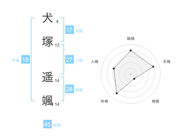 犬塚 遥颯さんの総格は45画の4点!