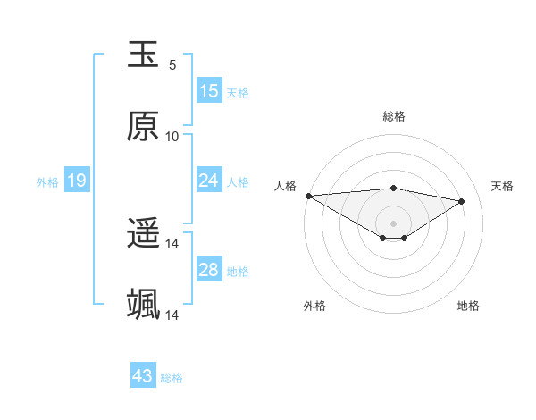 玉原 遥颯さんの総格は43画の2点!