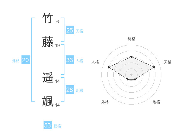 竹藤 遥颯さんの総格は53画の3点!