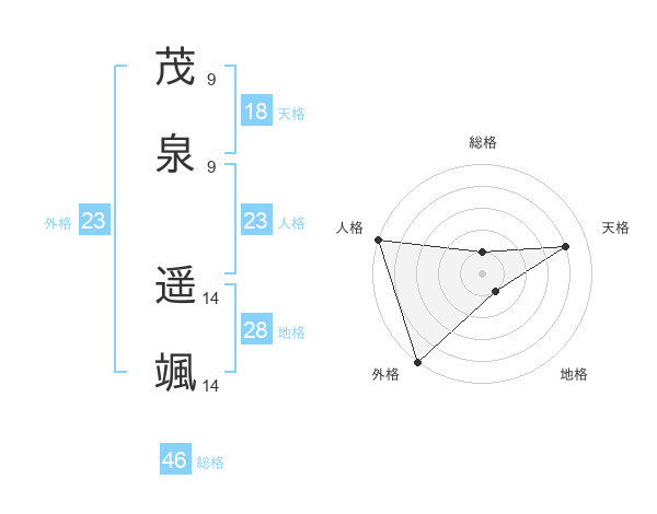茂泉 遥颯さんの天格は18画の4点!
