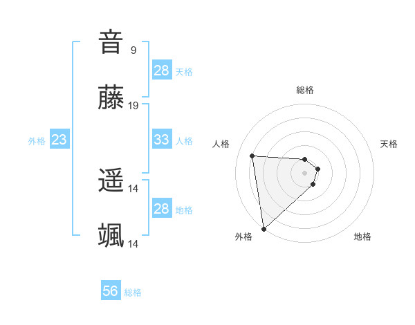 音藤 遥颯さんの外格は23画の5点!