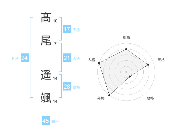 髙尾 遥颯さんの外格は24画の5点!