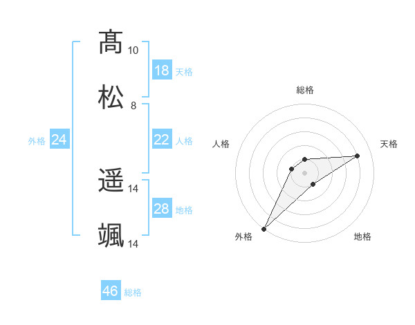 髙松 遥颯さんの天格は18画の4点!