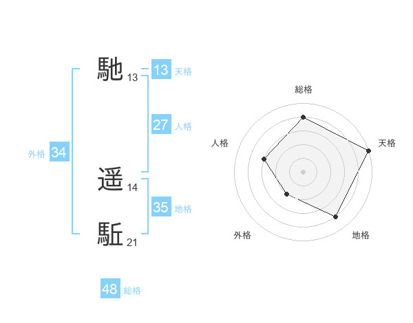 馳 遥駈さんを姓名の画数から五運を鑑定