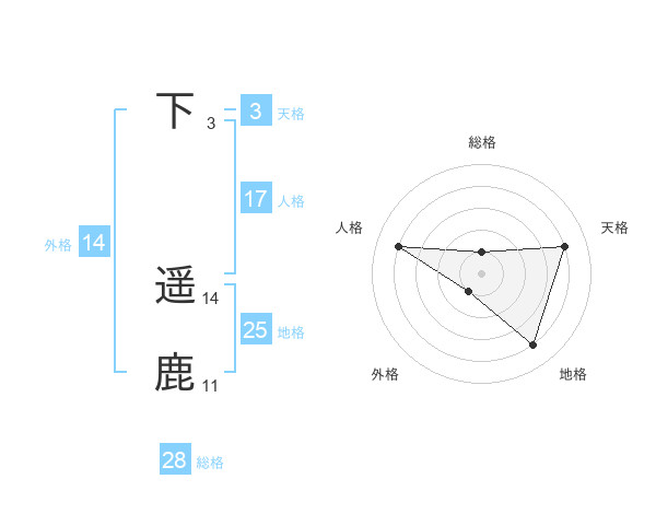 下 遥鹿さんの外格は14画の1点!