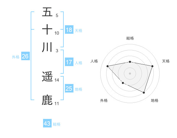五十川 遥鹿さんを姓名の画数から五運を鑑定