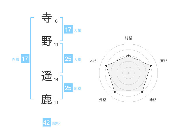 寺野 遥鹿さんを姓名の画数から五運を鑑定